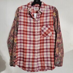 NEW Anthropologie Holding Horses Red Plaid Button Up Shacket Cotton Shirt Top