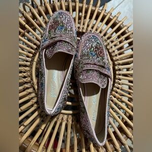 These are Betsey Jonson Aron Floral Rhinestoned Pink Loafers