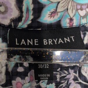 Lane Bryant Floral Shirt Womens Plus Size 30/32 Blue Lightweight Casual