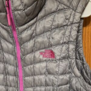 Quilted design for warmth. Stylish pink zipper detail. Ideal for layering. Has small hole in back see picture.