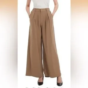 Step out in style with these elegant tan wide-leg pants. Perfect for any occasion, these pants offer both comfort and sophistication.