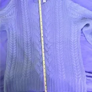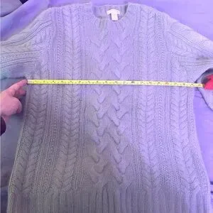 Stay cozy with this J. Crew cable knit chunky sweater. Soft mint pastel light greenish hue adds a stylish touch. See photos for approximate measurements in size. Gently used. No holes, tears, stains or snags. Smoke free home. EUC. Size Medium. Color swatch of end photo most closely resembles the color of sweater. Lightning from monitor may make color of item appear differently. True color of sweater in real life is like photos 4 and 5.