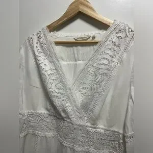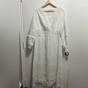 NWOT Soft Surroundings Araminta White Linen and Lace Maxi Dress Women’s Size 12
