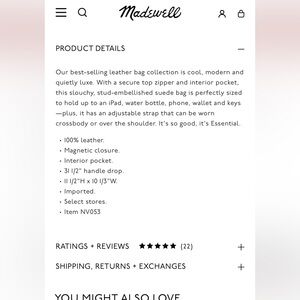 NWT Madewell Essential Curve Shoulder bag hobo purse