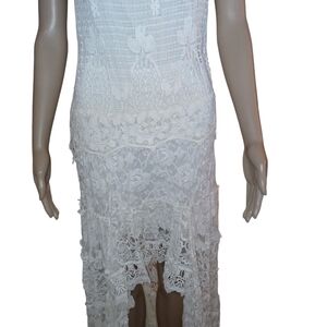 Chic white County wedding lace maxi dress with floral details. Perfect for elegant occasions.