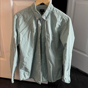 Men’s button down from Jcrew. Slim cut that’s very light and comfortable. Perfect for warm weather! It’s a green and white checkered pattern.