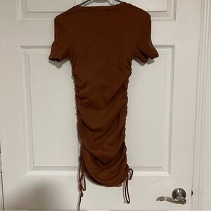 Zara Brown Ruched Short Sleeve Fitted Mini Dress Size S