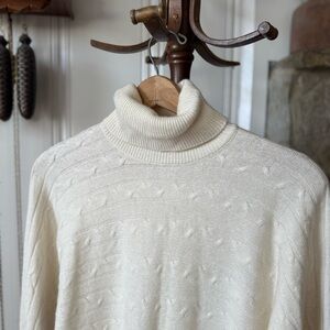 Cream Italian Merino Wool & Cashmere Dolman Sleeve Turtleneck Cableknit Sweater