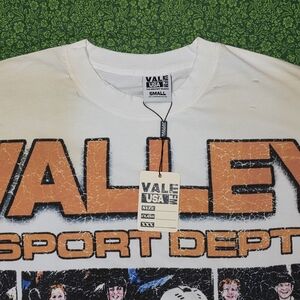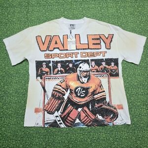 Show your love for hockey with the Sport Dept T-shirt by Vale Dreams. Featuring a bold design in white and orange, this shirt is perfect for game day or casual wear. Distressed look and unique vintage print. Multiple sizes available.