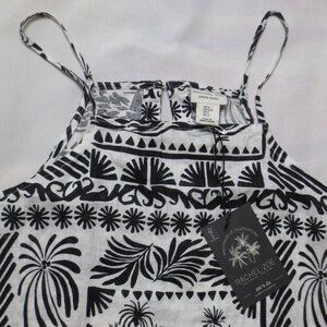 NWT RACHEL ZOE womens LINEN tank TOP black WHITE spaghetti strap BOHO SIZE L