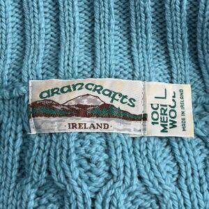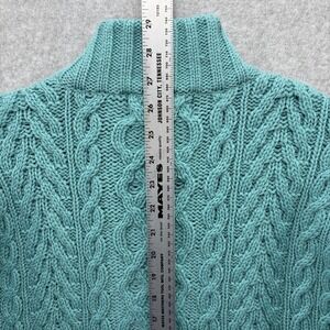 Aran Crafts Sweater Womens L Green Teal Merino Wool Cable Knit 1/4 Zip Ireland