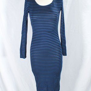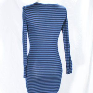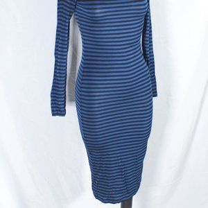 Size Small Blue and black striped Midi Dress By Forever 21 NWT. Looking for a bold and edgy dress to add to your style? Try this blue and black striped dress in a mid cut. Pair it with a moto jacket and boots for a chic Vanessa Hudgens style look this fall and winter! Long Sleeves.
