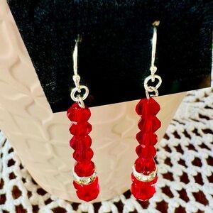 Elegant red dangle earrings crafted with sterling silver. Perfect for adding a touch of sophistication to any outfit.