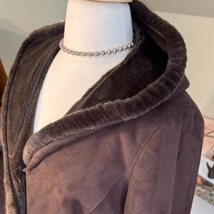 Jones New York Chocolate Brown Faux Shearling Fur Lined Coat with Hood Like New!