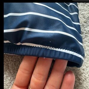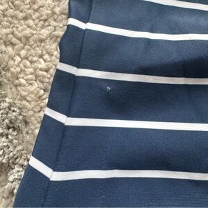 J Crew One Piece swimsuit bathing suit Navy blue white Striped cutout