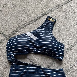 J Crew One Piece swimsuit bathing suit Navy blue white Striped cutout 16 new