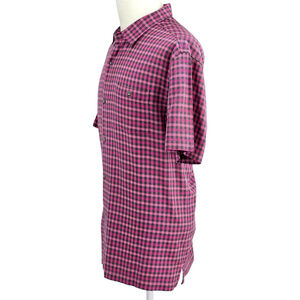 Tommy Bahama men’s 100% silk short sleeve shirt featuring a bold pink plaid and relaxed resort fit.