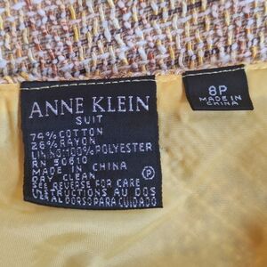 Vintage Anne Klein Tweed Fringe Hem Textured Academia Skirt Suit Set Blazer has a clasp closure Pockets Shoulder pads Split cuffs Lined Skirt is a side zip closure Fringe hem Lined. Womens 8P