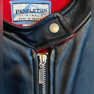 Pendleton Black Leather Vest with Red Fleece Lining Sz Small Mint Condition