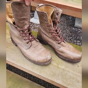 reposhing as these are too small for me. I'm a true 7.5 desc from previous seller: Stylish Frye boots with a rugged design. Features tan leather and lace-up closure. Perfect for casual wear.