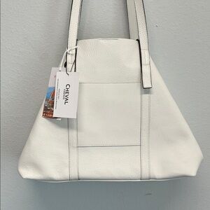 Cheval Firenze | White Leather Tote w/ Matching Mini Bag