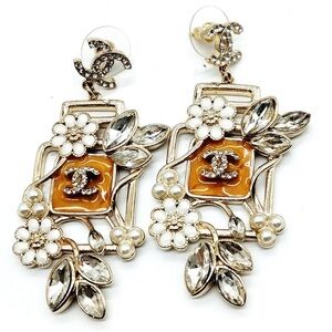 These stunning vintage Chanel earrings feature a beautiful blend of gold and silver tones, adorned with intricate floral designs. Perfect for adding a touch of elegance to any outfit.
