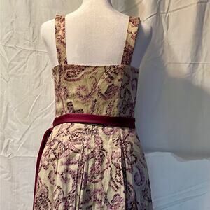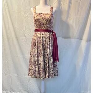 Ann Taylor Loft Dress Women's Tan/Purple Paisley A-line Sleeveless Belted Sz 0