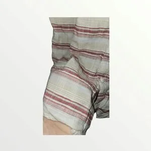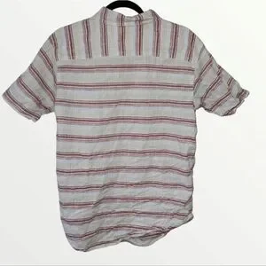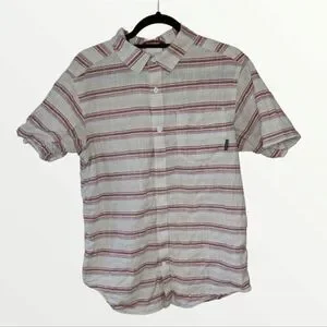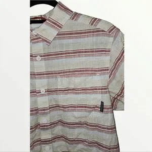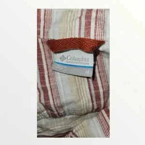 Columbia Button Up Shirt Mens Size M Short Sleeve Beige Red Gray Stripe
