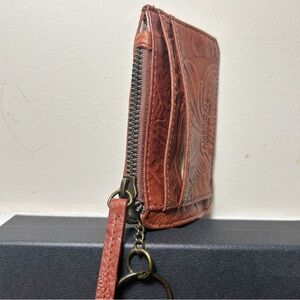 American Leather Co Portland Card Wallet Tooled Leather Floral Embossed NWOT Brandy Brown