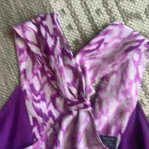 Calvin Klein halter dress size medium purple. 100% polyester fully lined. Elasticize waist 30 inches without being stretched.