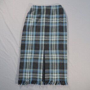 Elevate your style with this chic blue plaid maxi skirt. Perfect for any occasion, this skirt offers a blend of comfort and elegance.