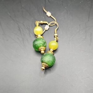 Elegant green and yellow beaded necklace featuring a detailed dragon pendant. Perfect for adding a touch of mystique to any outfit.