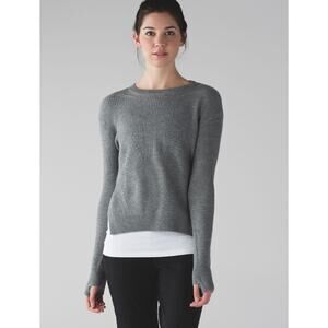 LULULEMON Estimated XS Seva Sweater Thumbholes Merino Wool Heathered Medium Gray