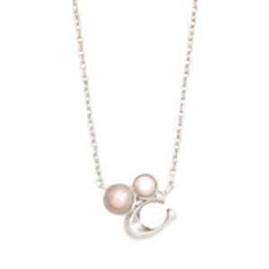 COACH Signature Sculpted C Pendant Silver Necklace with Cluster Pearls 16” + 2”