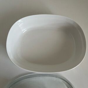 Elegant white baking dish with a clear glass lid. Perfect for baking and serving.