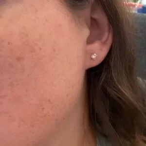 • Secure butterfly backs (one back is missing, easily replaceable)