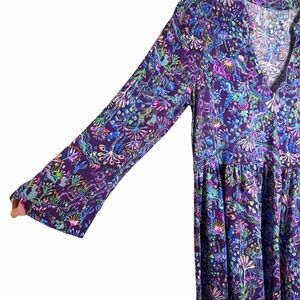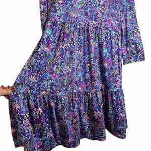 Lilly Pulitzer Alaina Dress Size L Colony Purple Berry Tiered Long Sleeve Preppy