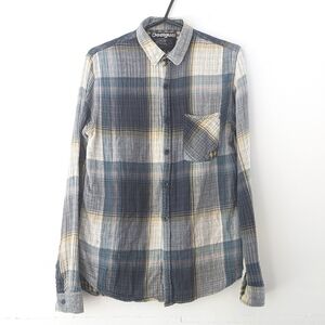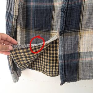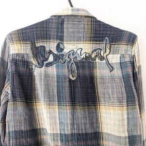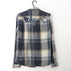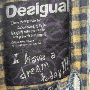 Stylish plaid design with a mix of colors and desigual written in the back in patchwork style. Perfect for casual outings. Unique Desigual flair. Soft muslin fabric. Inside tag missing, but measurements points to size small/medium. Last button is missing (see last photo)