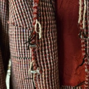 Womens Fossil Vintage Fitted Blazer Red Striped Raw Edges Layering Large
