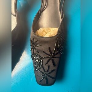 Mootsies Tootsies Black Slingback Heels with Floral Design