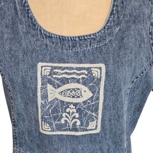 Studio East Vintage Blue Denim Graphic Maxi Dress