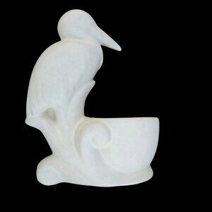 Matte White Pottery Bird Planter Trinket Bowl Mid-Century Modern 6 Inch