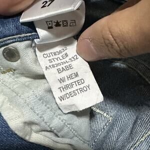 The AMO Babe Jeans Women's 27 in Blue are a stylish and versatile addition to any wardrobe. These distressed cotton jeans feature a button fly, high rise, and a slim fit. With a 5-pocket design, straight leg style, and added stretch, they are perfect for all seasons. Showcasing the brand's unique design and theme, these jeans are a blend of casual and trendy, making them a must-have for the fashion-forward woman. Made in the USA, these jeans are machine washable for easy care.