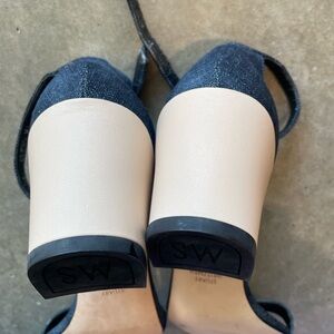 Stuart Weitzman Denim Ankle Strap Block Heel Sandals 9.5 Made in Spain