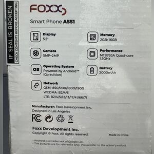 New Foxx A551 Unlocked Android Phone 16GB 2GB RAM