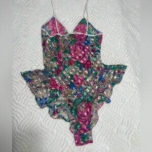 Vintage Victoria’s Secret Gold Label Floral Mesh Teddy Bodysuit M