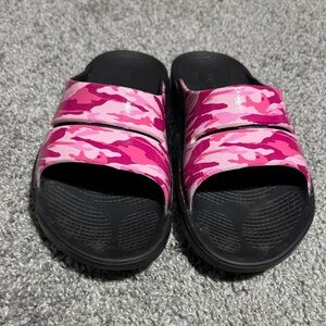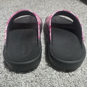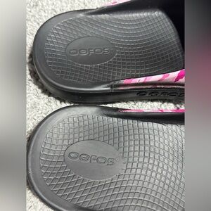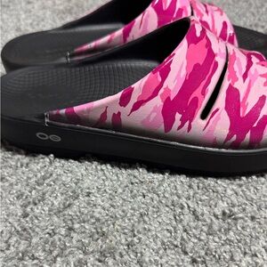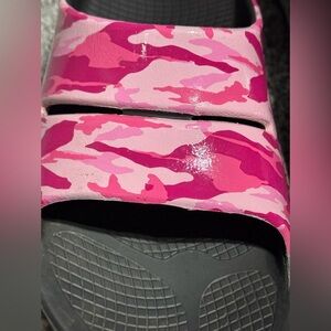 Comfortable OOFOS slides with pink camo design. Perfect for casual wear. Size 10 - excellent condition - super comfortable