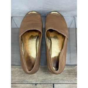 Prada Milano Espadrille Platform Wedge Peep Toe Leather Tan Shoes Size 39.5