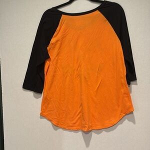 Style: Halloween, Pumpkin, Jack O Lantern. 3/4 sleeve, shirt / top