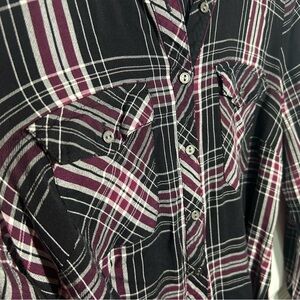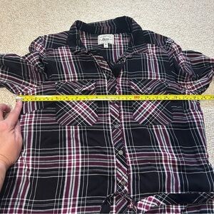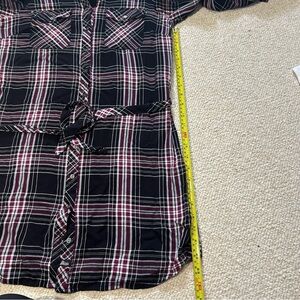 Bass Women’s plaid button up belted Shirt Dress Size Medium Black White Burgundy